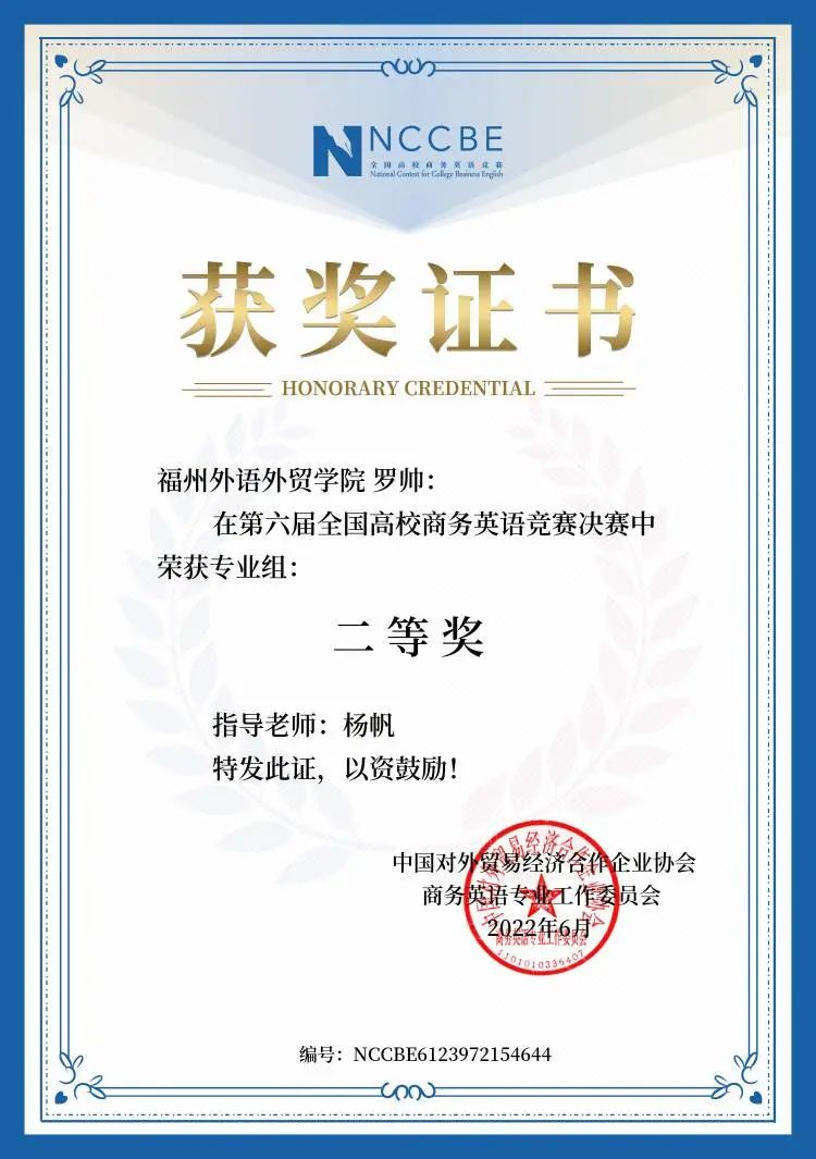 2021-2022学年 第六届全国高校商务英语竞赛决赛二等奖