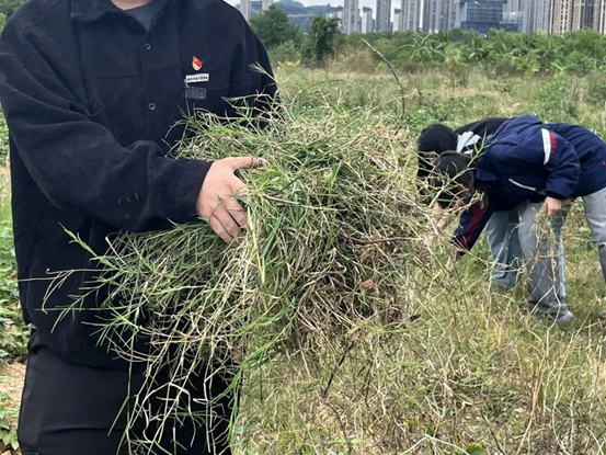 抵达农场后,在校外实践指导老师的指导下,同学们首先学习了杂草辨识与锄草要领。随后,各小组有序进入田间,调整状态投入到劳动中。大家挥动锄头,弯腰清理,相互协作,比效率、比质量,在汗水挥洒中深刻体会“锄禾日当午”的艰辛与“根除才能苗壮”的农事智慧。