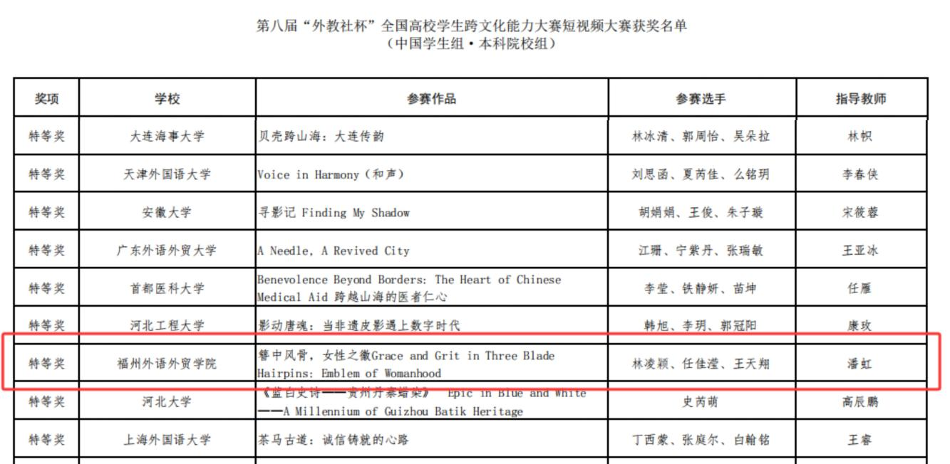 喜报 | 我院学子斩获第八届“外教社杯”全国高校学生跨文化能力大赛短视频大赛特等奖