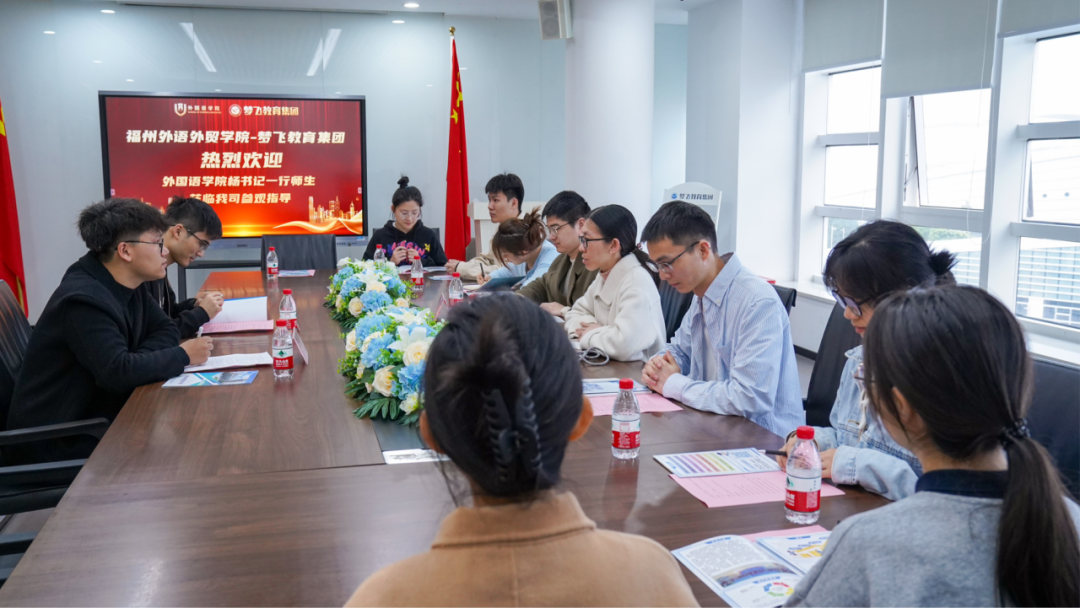 杨惠容表示,学院非常重视与梦飞教育集团的合作,同时也感谢集团提供给学生见习实习的机会,此次参观交流加深了对企业的了解,希望未来能够与梦飞教育开展更加紧密的合作,同时表达会做好学生就业跟踪,督促学生不断精进技能。陈亮表达了与福州外语外贸学院加强合作的意愿,愿意为学生提供实习和就业机会,期待吸纳更多符合市场需求的优秀人才。同时也希望借助学校的科研力量和人才资源,共同推动行业的发展和创新。