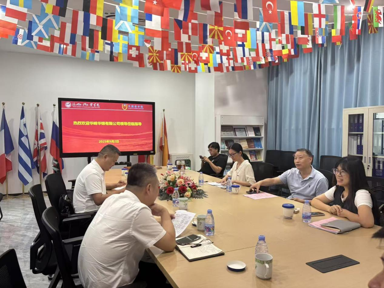 9月2日下午,华峰华锦有限公司副总裁陈锦程率队莅临智能语言服务产业学院,外国语学院院长赵会军、外国语学院副院长、智能语言服务产业学院院长黄丽萍、外国语学院党委书记、副院长杨惠容及教师代表参加座谈交流。双方围绕语料库建设、国际市场拓展、人才培养等多个领域展开深入讨论,并就进一步推进校企合作达成多项共识。