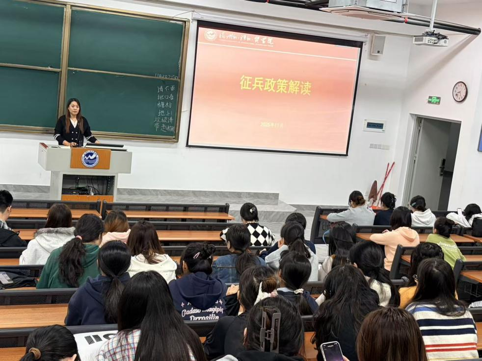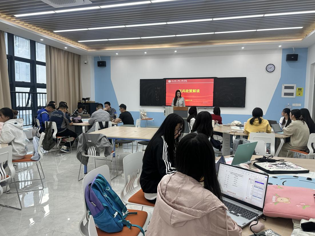 为鼓励适龄学生响应国家号召,积极投身国防建设,激发学生参军热情,11月9日晚,外国语学院开开展征兵宣传主题班会,全体毕业班学生参与。