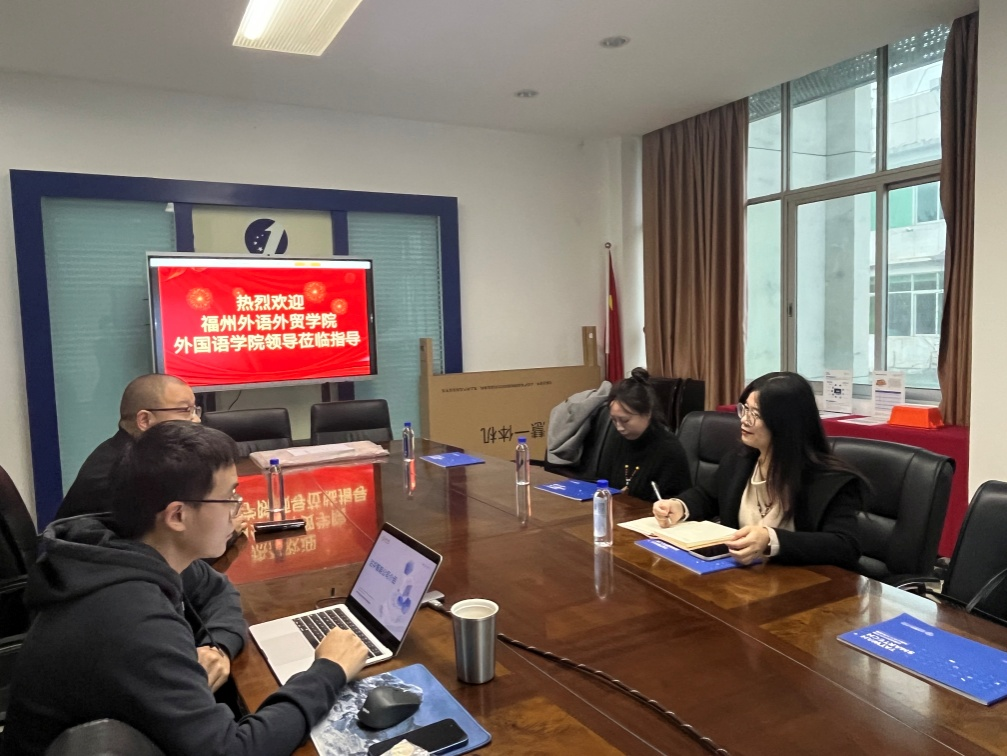 为深化产教融合、拓宽实习就业渠道,12月24日下午,外国语学院副院长、智能语言服务产业学院院长黄丽萍率法语系主任章赟菡及专任教师温玉洁一行三人赴福建达华智能科技股份有限公司(以下简称“达华智能”)开展“访企拓岗促就业”专项行动。走访期间,双方围绕外语人才培养、国际化业务合作等议题展开深入交流,为校企协同育人搭建沟通桥梁。