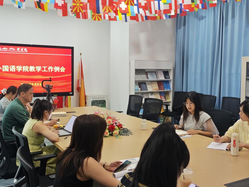 9月9日上午10时30分,我院于外国语学院会议室召开本学期教学工作例会。此次会议由教学副院长黄丽萍主持,院长助理杨帆及各系部主任出席会议。会议就2026届毕业论文安排与毕业实习管理、专业等级考试提质、学科竞赛统筹及外语角品牌化建设等核心任务展开部署,强调通过规范化管理与创新性举措全面推动教学质量提升。