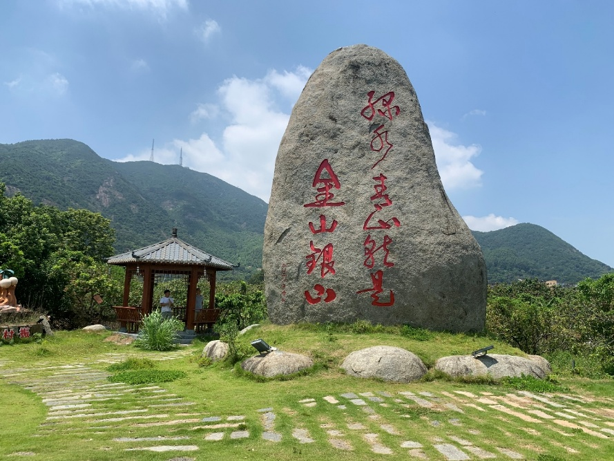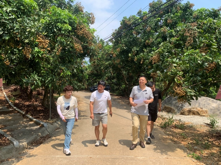 2025年8月23日,福州外语外贸学院乡村振兴学院副院长郑程挺带队深入福州市长乐区古槐镇与鹤上镇一线,实地走访了两个具有代表性的村庄,探寻乡村振兴的新路径。上午,教学团队首先抵达享有“唐宗宋果”美誉的贡果龙眼之乡——青山村。青山村村书记黄颖勤热情接待了教学团队,亲自引领大家参观漫山遍野的龙眼种植园,村中随处可见挂满枝头的龙眼树,硕果累累。尤其引人注目的是村中一块巍然矗立的巨石,它不仅是村庄的骄傲,更铭刻着习近平总书记当年考察时留下的深刻印记。1991年8月31日,时任福州市委书记的习近平同志考察青山村时曾指出:“这里的绿水青山就是你们的金山银山”。黄颖勤书记表示,期待与福州外语外贸学院师生携手开启首场盛大的产学融合实践,共同举办青山贡果节,进一步推动乡村产业蓬勃发展。