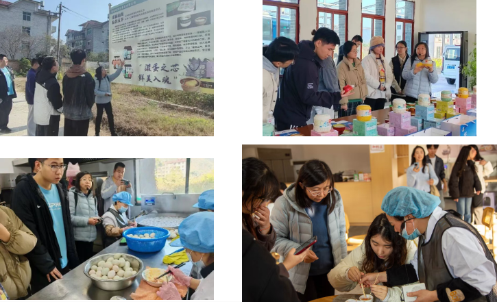 凯美达食品有限公司总经理黄占禧为师生介绍企业发展历程,详解非遗特色产品“灌蛋”的工艺传承与故事内涵。同学们走进整洁规范的生产车间,近距离观察灌蛋从原料处理到成品包装的全流程,感受传统美食现代化生产的严谨规范与创新活力。在产品展馆,学子们细致调研产品系列、包装设计与市场布局,结合专业知识,从消费者与设计者双重视角,思考地方特色食品的品牌升级与市场竞争力提升路径。