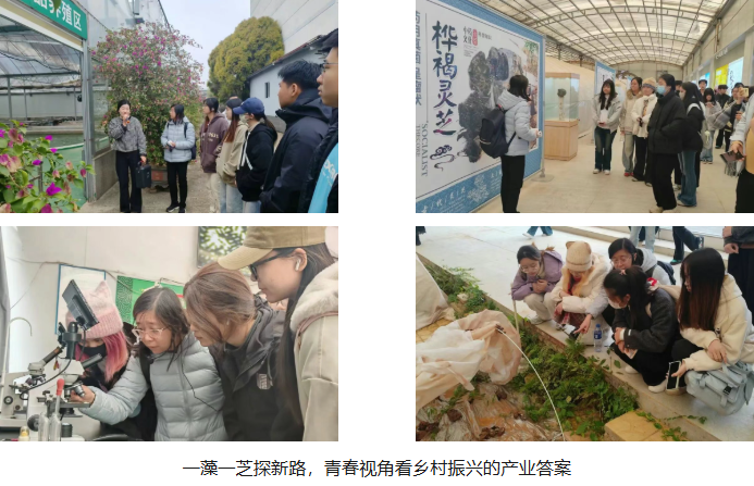 走进神六集团螺旋藻与灵芝生产基地,同学们在微藻池边观察“会呼吸的绿色瑰宝”,在灵芝棚内触摸“大地孕育的生态珍品”,更深入探寻传统农产品的创新转型之路。从线上线下融合的品牌叙事、产学研协同的产品创新,到扎根乡土的文化赋能,同学们清晰看到地方企业以产业思维为引领,凭借科技创新与特色产品,将生态资源转化为乡村振兴持久动力的实践路径,见证企业在细分领域成长为“隐形冠军”的发展历程。更令人触动的是,企业深度融入县域经济发展脉络,通过建立原料基地、带动本地就业等方式,实现“扎根一方、反哺一方”的良性循环,为乡村振兴提供坚实产业支撑。