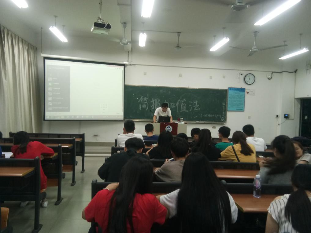 图1:工商系曹曾树老师为同学成员们讲解“简报加值法”的概念
