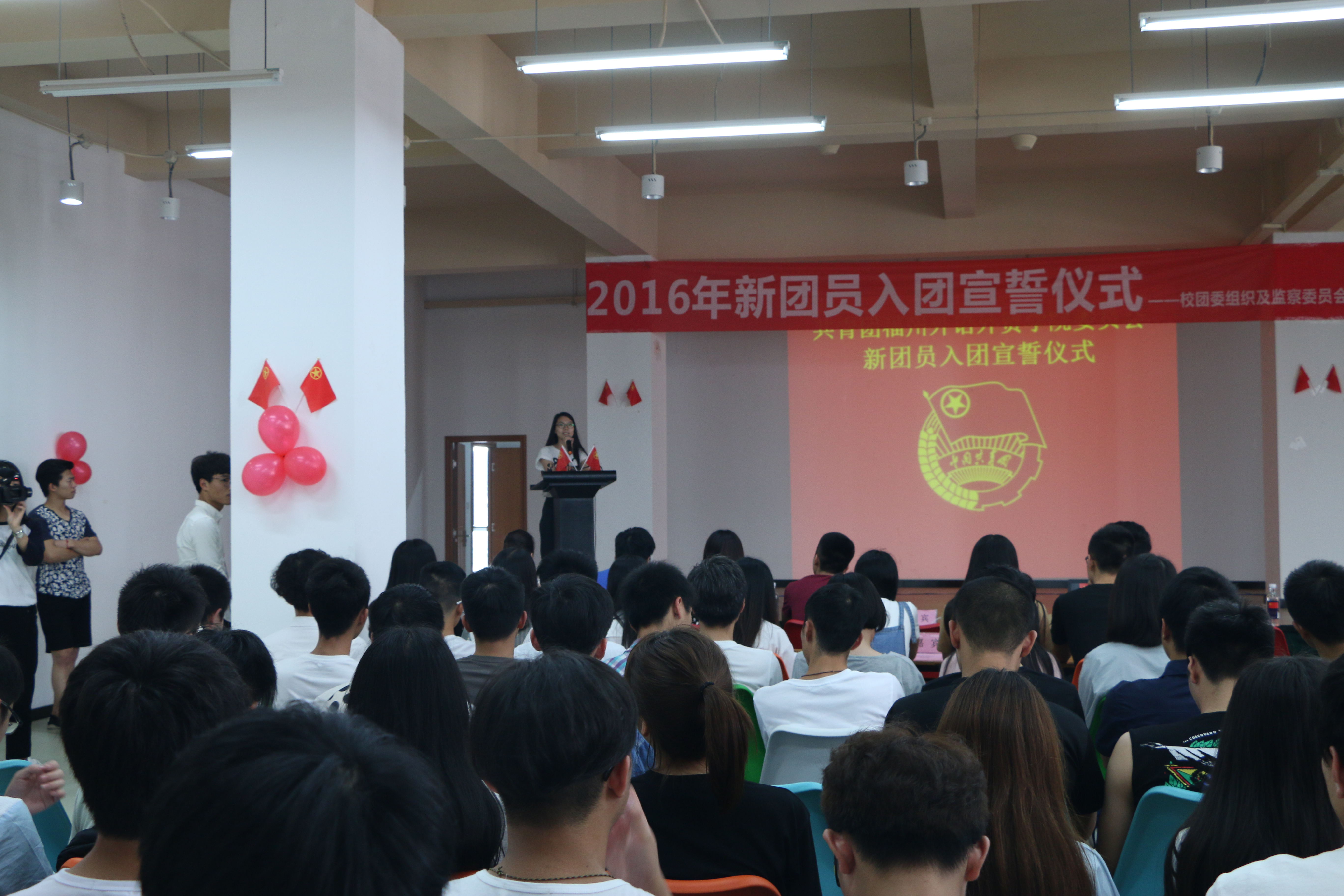大会在雄壮的国歌中拉开帷幕,首先由校团委组织及监察委员会主任杨隆宇宣布审批通过的176位新团员名单、随后在老团员郭和平同学的带领下,全体新团员面对着鲜艳的团旗,向团组织庄严宣誓,豪壮的誓言,激励着在场的每名青年。新老团员代表也都以饱满的热情号召在场每一位青年时刻用共青团员标准严格要求自己,明确努力目标。最后陈洁老师为本次活动做了总结讲话,提出希望全体新团员们能积极为团组织、为学校争光添彩。为共产主义事业而奋斗!在嘹亮的团歌大合唱声中,本次活动圆满地落下了帷幕。