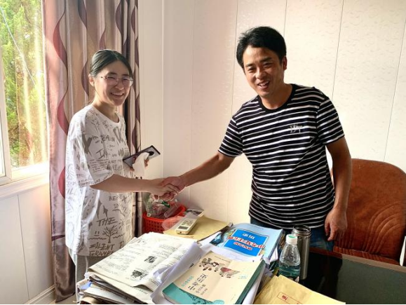 图十(前往仙阳中学) 图十一(与校长握手言谈)