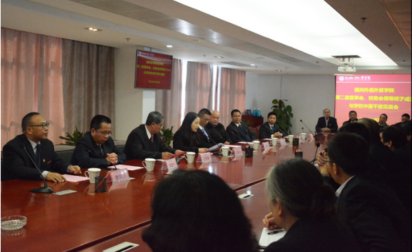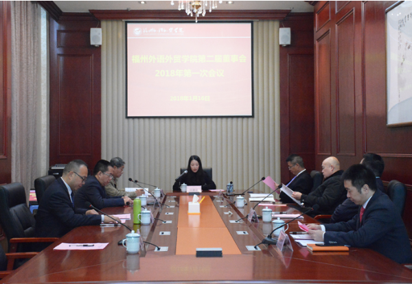 当天,先召开福州外语外贸学院第一届董事会2018年第一次会议和第二届董事会成立大会。吴钦明董事长主持会议。会议审议了《福州外语外贸学院董事会章程》(修订)、《福州外语外贸学院董事会会议议事规则》、《福州外语外贸学院校领导聘任原则性意见》、《福州外语外贸学院机构设置调整的原则性意见》,研究福州外语外贸学院第一届董事会届满换届工作。会议决定福州外语外贸学院第一届董事会届满解散,委派和聘任了福州外语外贸学院第二届董事会董事。