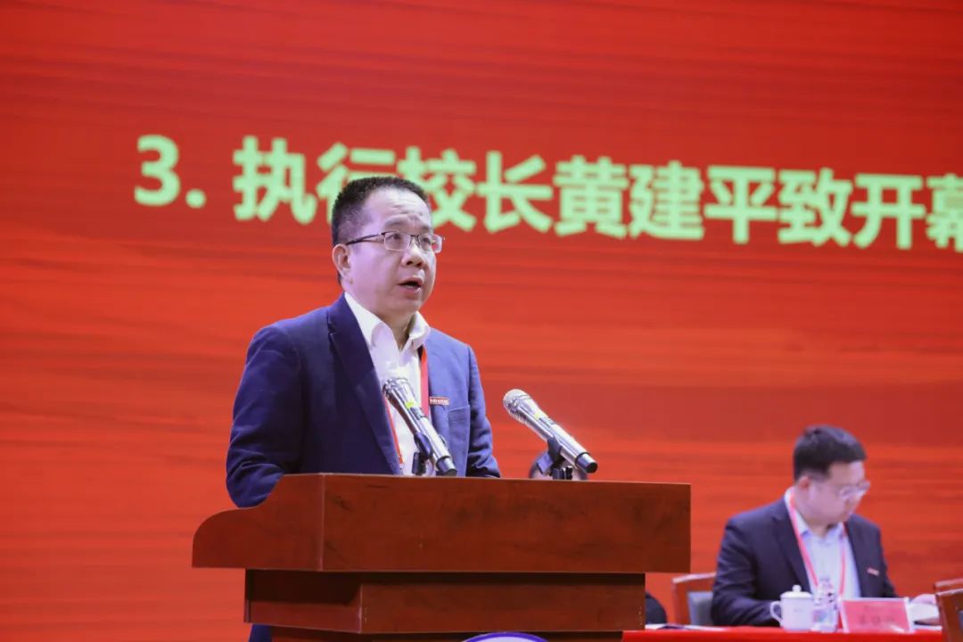 黄建平致开幕词执行校长黄建平致开幕词,他代表学校董事会、党政班子向大会的召开表示热烈祝贺,希望全体代表以习近平新时代中国特色社会主义思想为指导,认真履行代表职责,众志成城、团结鼓劲、开拓创新,共谋我校的高质量发展,共同书写我校树立同类高校“排头兵”样板的崭新篇章。