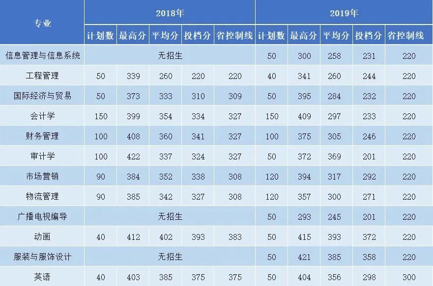 2018-2019年投档分参考