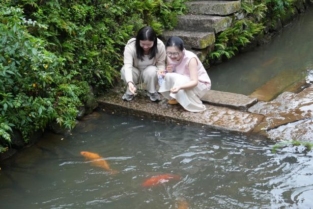 在周宁县浦源镇,鲤鱼溪畔的护鱼文化已有八百余年历史,被誉为“人鱼同乐”的生态奇观。实践队队员们深入探访,见证了村民与溪中鲤鱼和谐共处的动人场景——鱼儿闻声而来,与人亲密互动,展现着“护鱼如护子”的淳朴传统。如今,这份生态智慧正转化为乡村发展的底气 —— 依托鲤鱼溪景区,村民们开起了民宿、茶馆,守护锦鲤的同时,也守护着“家门口的幸福”。