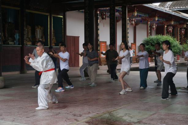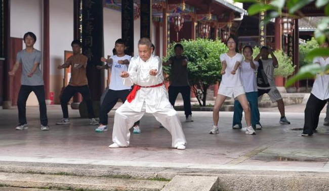 郑氏宗祠前的广场上,锣鼓声穿透晨雾,护鱼武者身着传统服饰,带领着一群初中学生演练起刚劲有力的招式。这套融合了防身与护鱼功能的独特武术,作为市级非物质文化遗产,守护的不仅是溪中万千锦鲤,更是一份延续八百年的生态承诺。实践队员的镜头里,溪中锦鲤摆尾,岸上拳脚生风,八百年的生态智慧,正成为乡村可持续发展的“硬底气”。