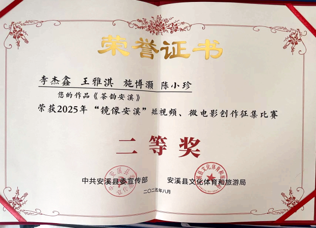 三位同学深耕安溪的茶文化、自然风光与人文底蕴,以细腻的视角、生动的镜头语言,将这片土地的古老韵味与蓬勃生机融入作品,让安溪的故事在光影中流转,最终凭借扎实的创作功底和独特的创意表达,在激烈竞争中赢得评委认可。