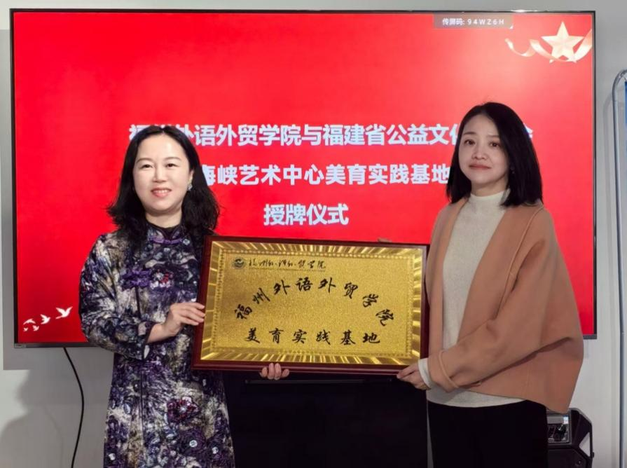 作为福州知名文化地标,海峡文化艺术中心依托福州新区集团旗下国企资源与专业场地优势,而福州外语外贸学院艺术与设计学院则凭借多学科布局、雄厚师资力量及丰富实践成果,为基地建设提供坚实学术支撑。双方以此次挂牌为契机,构建“教学—实践—产业—社会服务”四位一体美育实践体系,通过深度合作实现资源互补,打造集课程开发、项目实践、成果转化、社会服务于一体的特色基地,重点培养兼具艺术创造力与商业运营能力的复合型艺术人才。