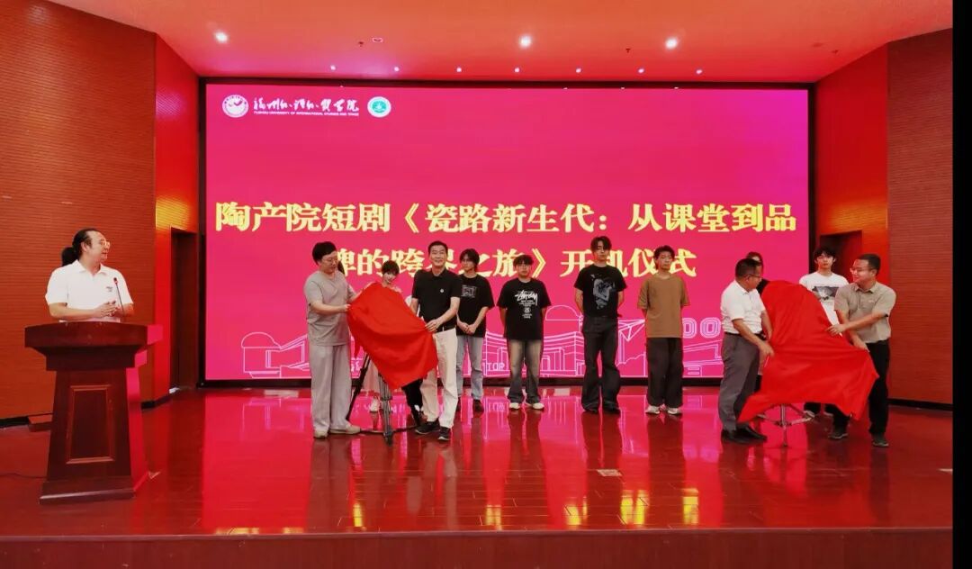 大会亮点,品牌力量的传承与延续。作为开场的重要环节,陶产院短剧《瓷路新生代:从课堂到品牌的跨界之旅》举行开机揭牌仪式,标志着学院在产教融合、课程体系与产业需求对接方面迈出新的步伐。黄建平校长、林锋主任、吴培煌书记及温旭晨等嘉宾共同见证这一具有里程碑意义的时刻,向全体学子传递了“以创新推动成长、以责任铸就未来”的信念。