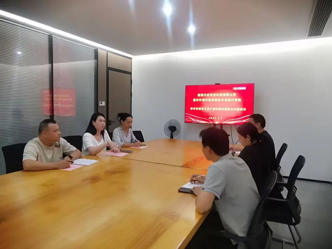 7月7日,福州外语外贸学院艺术与设计学院成功举办数字非遗活化设计虚拟教研室校企共建研讨会。副院长郑则凌、动画系主任陈力彦,专业教师代表王家荣以及天宏创世科技有限公司教育事业部总监胡仙依,共同为数字非遗活化设计领域的人才培养与产学研合作出谋划策。