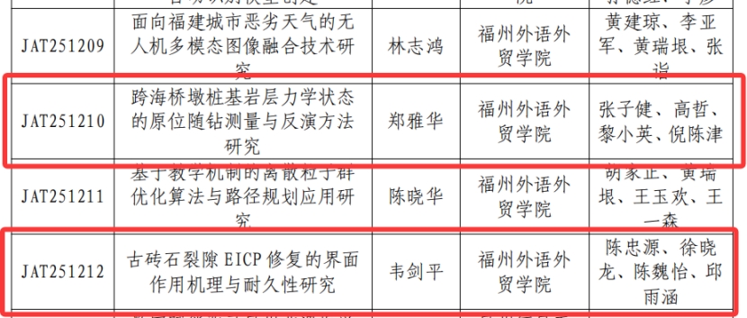 近日,2025年度福建省中青年教师教育科研项目立项名单公布。我院多位教师获批立项,充分展现了学院在科技与社科研究领域的雄厚实力与青年人才的蓬勃朝气。其中,高哲老师主持申报的课题成功获批省中青年(科技类)重点项目;郑雅华老师、韦剑平老师主持的课题双双获批省中青年(科技类)一般项目;江浩楠老师主持的课题成功获批省中青年(社科类)一般项目。谨向以上四位老师表示最热烈的祝贺!