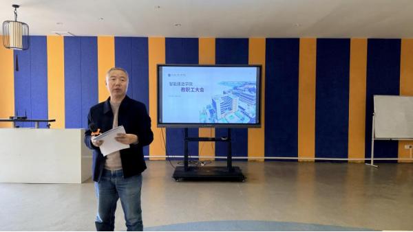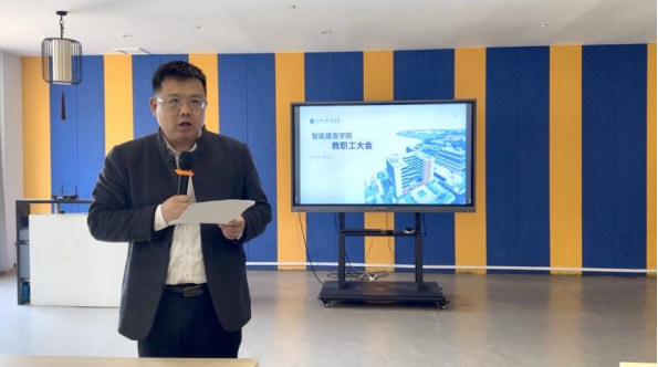 3月17日下午,智能建造学院在教5403VR实训中心召开全体教职工大会,对近期学院各项重点工作进行部署与动员。学院院长毕贤顺,副院长、分党委书记吴晓凯,院长助理李尚辉及全体教职工参加会议,会议由办公室副主任许婷婷主持。