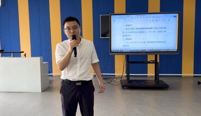 最后,院长毕贤顺作总结讲话。他提出要积极探索AI技术赋能课堂教学,推动教学模式创新,提升教学智能化水平;他重申毕业设计工作的重要性,要求重视审核环节,强化过程性管理,杜绝走过场;科研项目申报要提早准备、精心打磨,提升申报质量;同时要持续深化校企合作,合力推动产教融合,助力学院高质量发展。