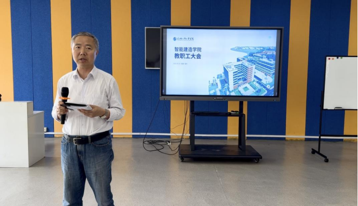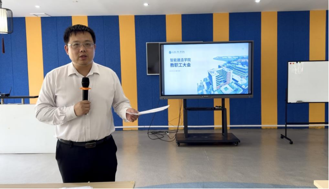 4月14日14:30,智能建造学院在教5403VR实训中心召开全体教职工大会。院长毕贤顺,副院长、分党委书记吴晓凯,院长助理李尚辉及全体教职工参加会议。