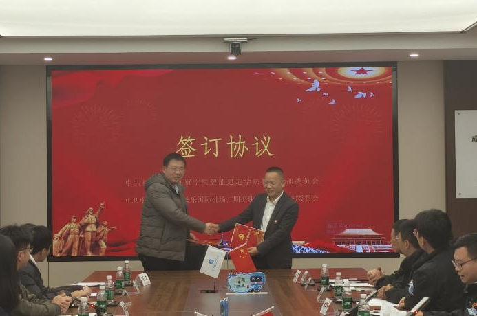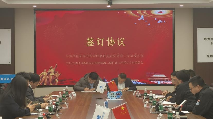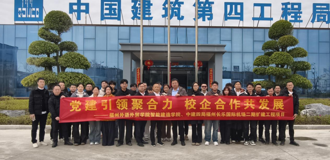 为深入学习贯彻党的二十届三中全会精神,践行新发展理念,推动习近平总书记重要讲话精神在建筑行业高质量发展中落地生根,2025年4月1日,福州外语外贸学院智能建造学院与中建四局福州长乐国际机场二期扩建工程项目部联合举办了党建共建活动。本次活动以“党建引领聚合力,校企合作共发展”为主题,旨在通过党建引领、思想共建、校企协同,探索长效机制,为建筑行业高质量发展注入新动能。