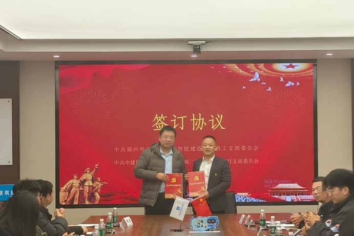 在热烈的掌声中,中共中建四局福州长乐国际机场二期扩建工程项目支部委员会与中共福州外语外贸学院智能建造学院教工支部委员会正式签订了党建共建协议。项目部石荣智书记与智能建造学院吴晓凯书记代表双方签署协议,标志着校企双方在党建引领下开启了全面合作的新篇章。协议的签订不仅是双方合作的里程碑,更是未来深化校企协同、推动党建与业务深度融合的重要起点。双方将以党建为纽带,携手共进,探索长效机制,共同为建筑行业高质量发展贡献智慧与力量。