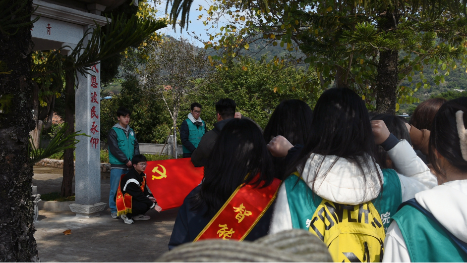 默哀仪式结束后,全体党员怀着崇敬之心,面向鲜红的党旗,再次整齐列队。在领誓人陈江霖老师的带领下,大家高擎右拳,字字铿锵地重温入党誓词。激昂的誓言穿透陵园的上空,彰显着党员们对党忠诚的坚定信念,对共产主义事业矢志不渝的追求,以及为党和人民事业奋斗终生的豪迈决心。