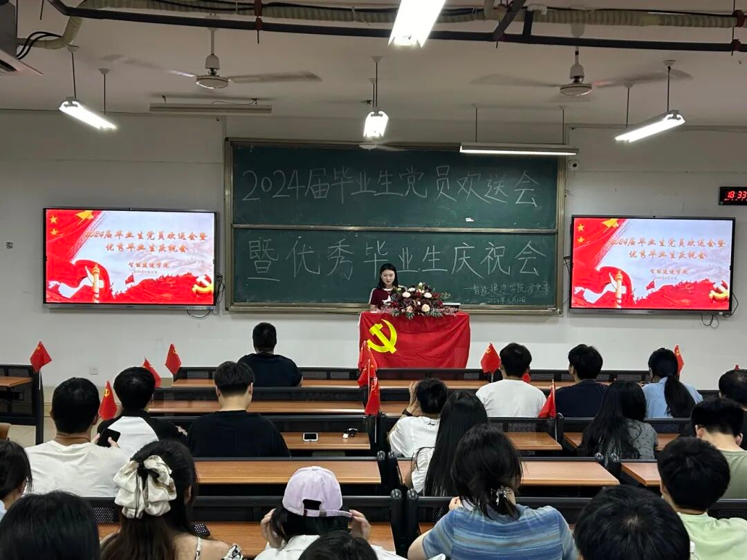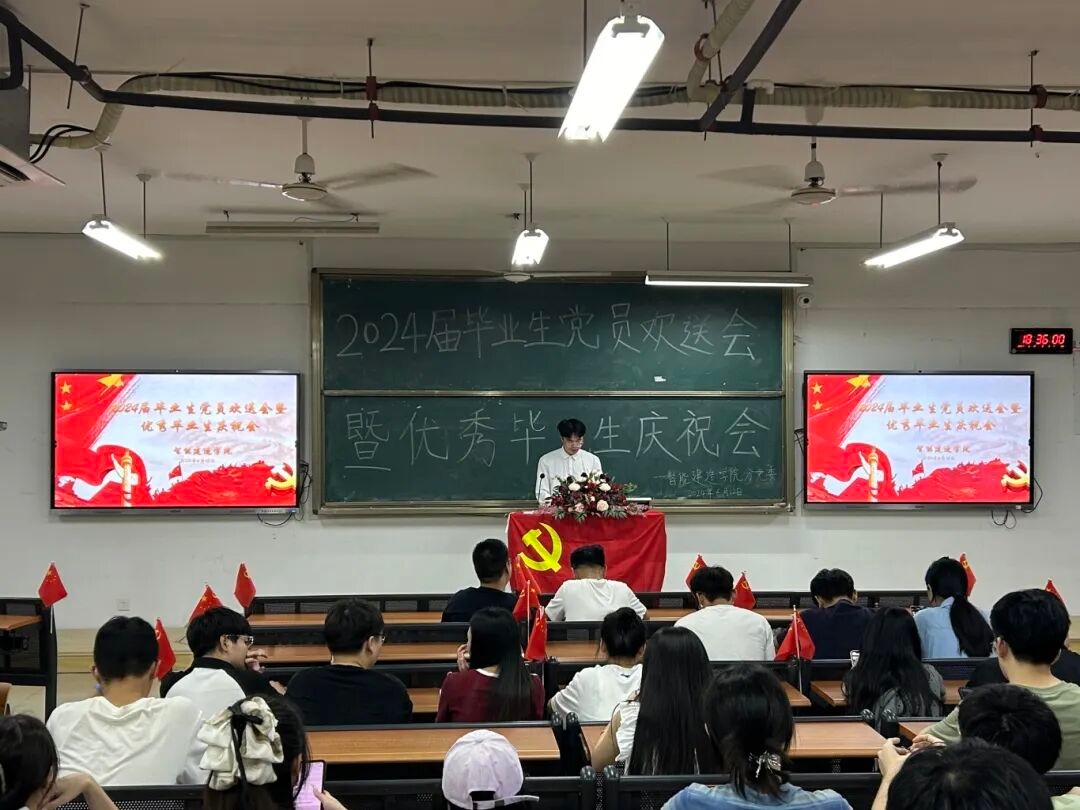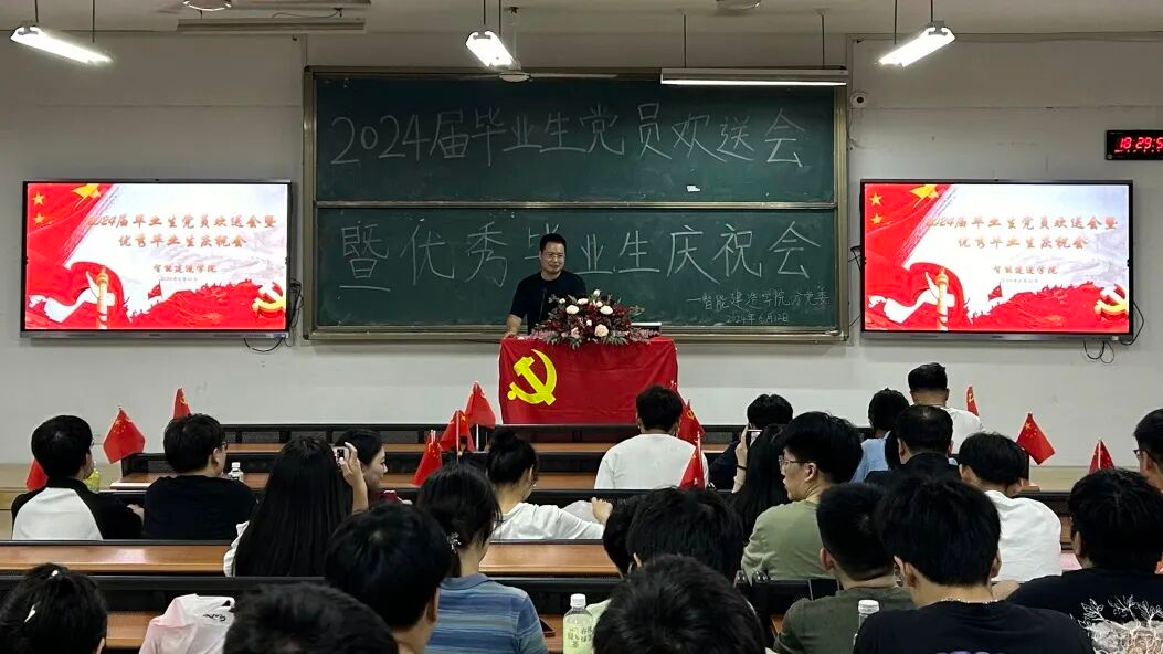 党旗领航初心路,青年奋进新征程。为深入学习贯彻习近平新时代中国特色社会主义思想,贯彻落实立德树人根本任务,切实加强毕业生党员的理想信念教育、党纪学习教育,强化毕业生党员的党性修养。智能建造学院于2024年6月12日18点30分在北区实验楼3204举行毕业生党员欢送会暨优秀毕业生庆祝会。