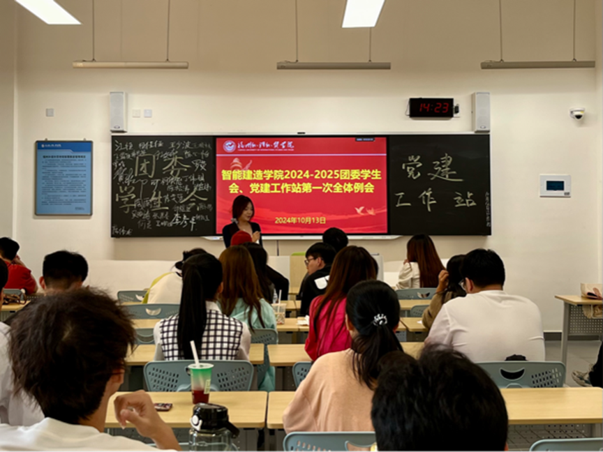 为进一步完善学院团学与党站的队伍建设,在这金秋十月,收获的季节里 ,于10月13日下午在滨海校区举行了智能建造学院2024-2025学年团委、学生会、党建工作站第一次全体例会。智能建造学院团委副书记(生)、学生会主席、学生党建工作站站长、以及全体部长参与本次会议。