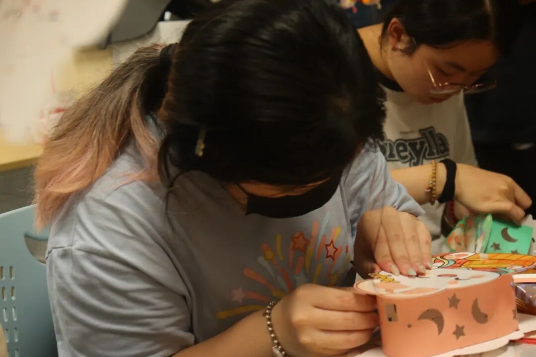 创意手工区格外温馨。同学们发挥想象力,制作出独一无二的中秋灯笼和创意“月球”。当一盏盏灯笼亮起,当一个个布满环形山的“月球”诞生,成就感与节日暖意在心间流淌。
