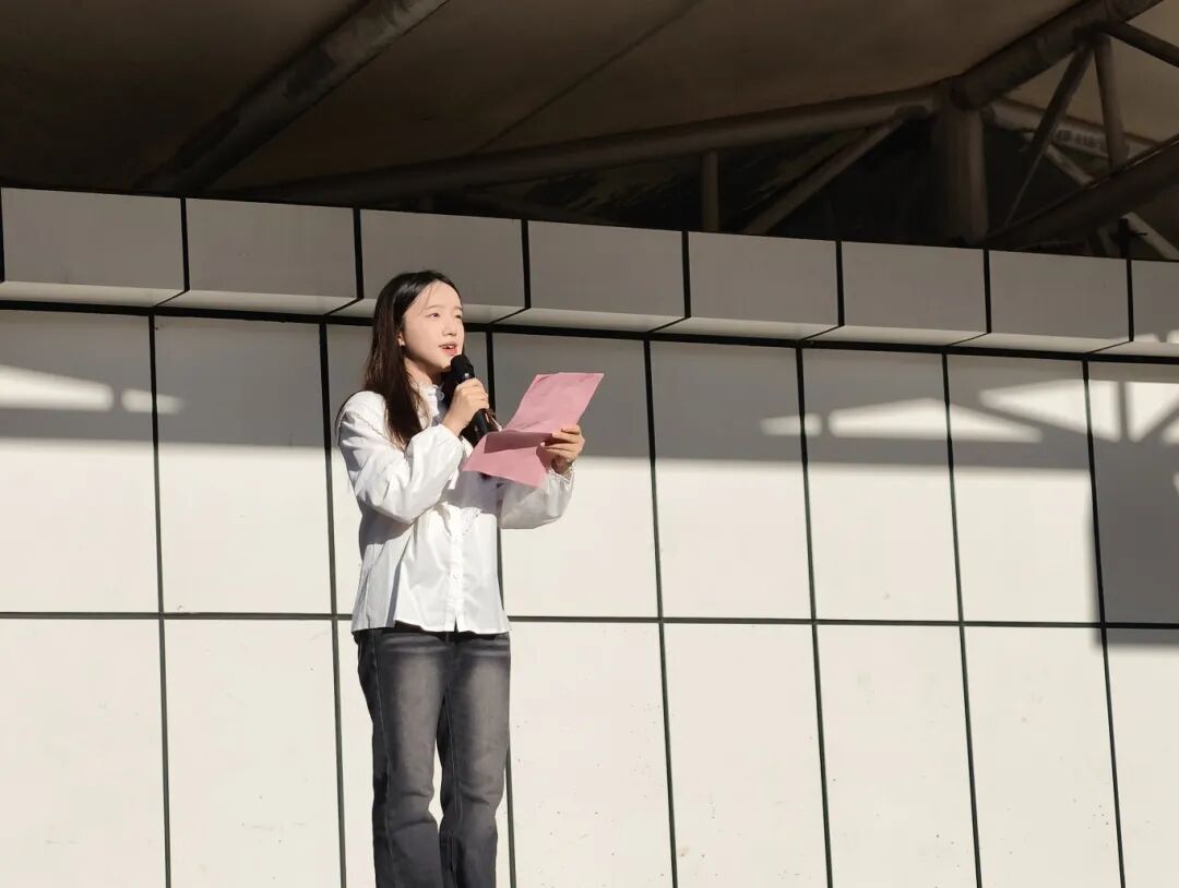 22级的何艾蔚在国旗下回顾了抗战时期各族儿女共赴国难的壮阔历史,号召大家将“天下兴亡,匹夫有责”的爱国情怀融入新时代的学习实践,主动将个人成长融入民族复兴的伟大征程。