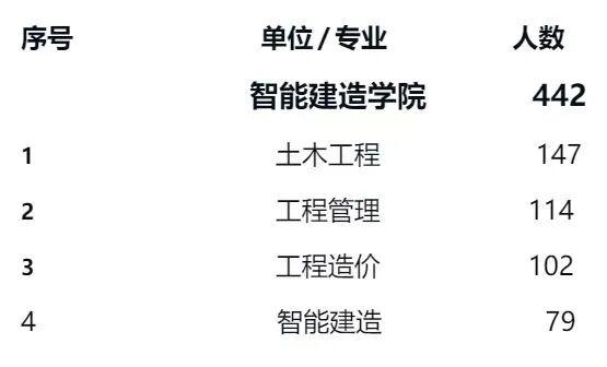 智能建造学院设有土木工程、工程管理、工程造价、智能建造4个全日制本科专业,已初步形成较完整的土木工程类本科专业人才培养体系。目前全院在校本科生1700余人。学院注重学生创新能力、动手能力、团队精神和综合素质的培养。近三年来,获得全国性竞赛奖励70余项、省级以上奖励100余项。