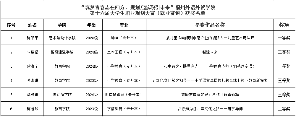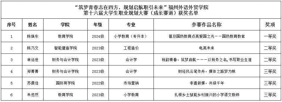 本次大赛为我校学子提供了一个发现自我、展示自我、规划自我的平台,助力我校学子充分做好职业生涯。接下来,我校将继续引导学生树立正确的成才观和择业就业观,帮助学生科学合理规划学业与职业发展,做实做细就业指导服务,提升就业竞争力。