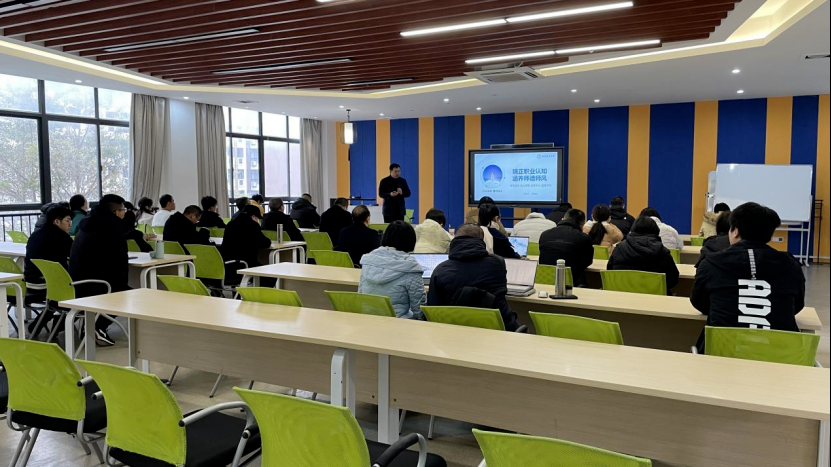 师德建设一直是教师队伍建设的核心工作。为不断提高教师师德素养,树立优良师风,1月23日上午,智能建造学院副院长、分党委书记吴晓凯在教5403VR实训中心面向学院全体教职工开展《端正职业认知,涵养师德师风》培训讲座。