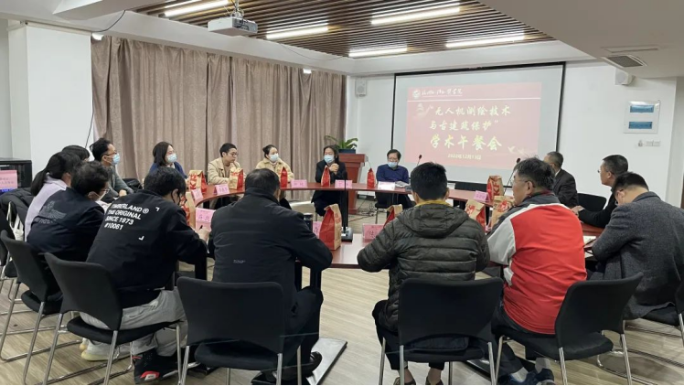 无人机成像和数据采集技术发展迅速,逐渐成为古建筑数字化保护领域无法代替的方法之一。为进一步了解无人机测绘行业发展动态,聚焦无人机测绘技术在古建筑保护中的应用,加强专业间的思想交流,智能建造学院于12月13日在教师发展中心多功能研讨室召开“无人机测绘技术与古建筑保护”学术午餐会。研发中心主任吴钦缘、大数据学院院长宁正元、艺术与设计学院副院长丁铮等学校部分单位专家教授拨冗出席,与我院院长毕贤顺、副院长陈忠源、副院长、分党委书记吴晓凯及部分骨干教师共同参加了此次会议。